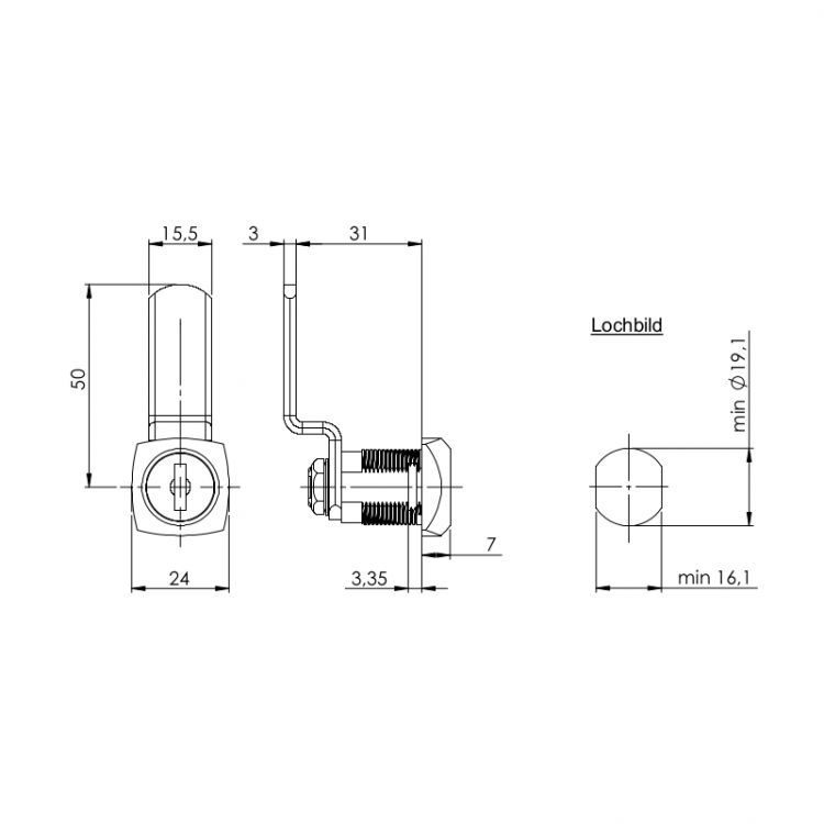 - Hebelschloss inkl. 2 Schlüssel,