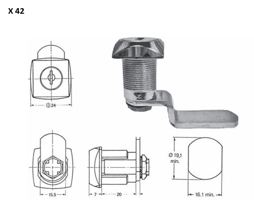 Hebelzylinder EUROLOCKS X42 mit Mutter, 2 Schlüssel